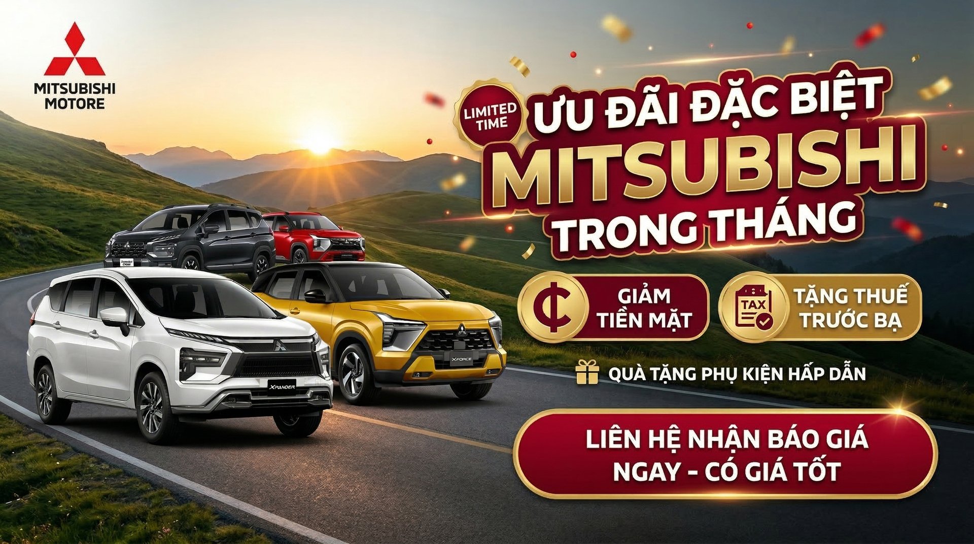 - Mitsubishi Outlander : Tặng Camera Toàn Cảnh 360 Độ (Trị Giá Lên Tới 20 Triệu VNĐ) & 01 Năm Bảo Hiểm Vật Chất + Phiếu Nhiên Liệu Trị Giá 20 Triệu
